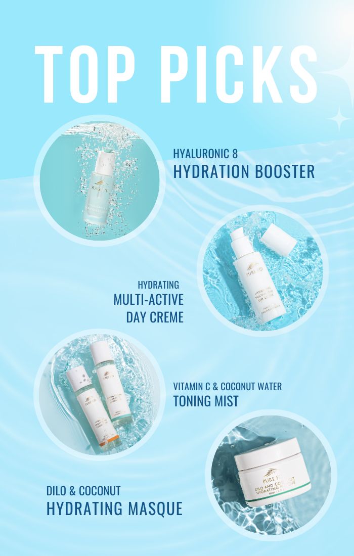 Solution: Drink more water and put moisture back into dry, dehydrated skin with our Hydrating Multi-Active Day Crème (morning and night), Hydrate and Nourish Luxury Face Oil or our Dilo Anti-ageing booster (daily) and twice a week use our Dilo Coconut Hydrating Masque which can be left on overnight.