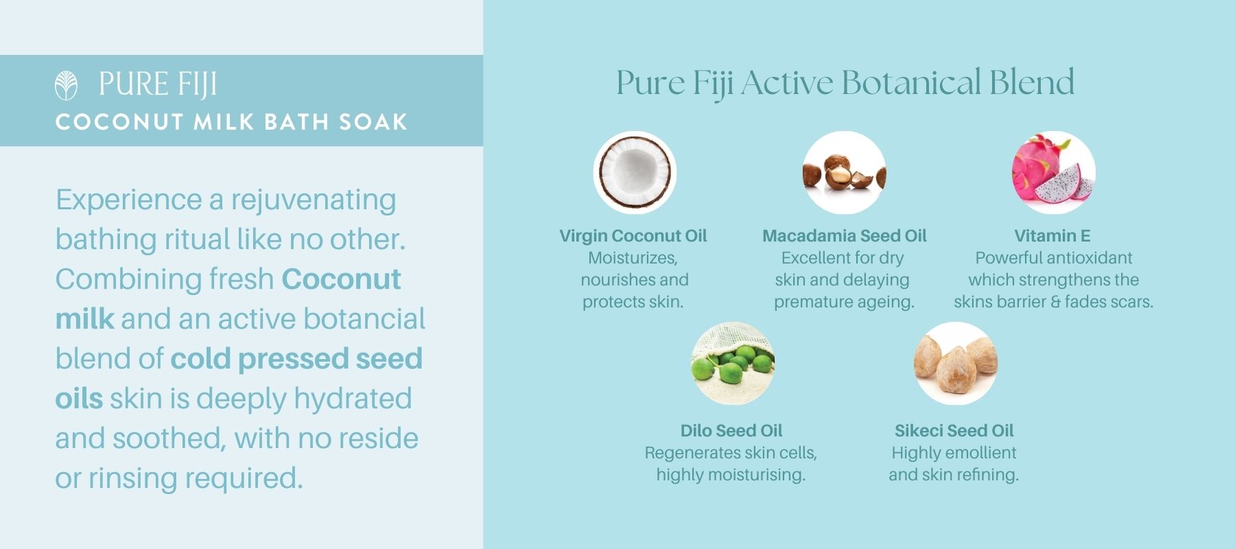 Infused with Virgin Coconut, Dilo, Sikeci, and Macadamia oils, this bath soak is rich in essential fatty acids, vitamins, and antioxidants that nourish the skin, support cell regeneration, and help repair dry or damaged skin.