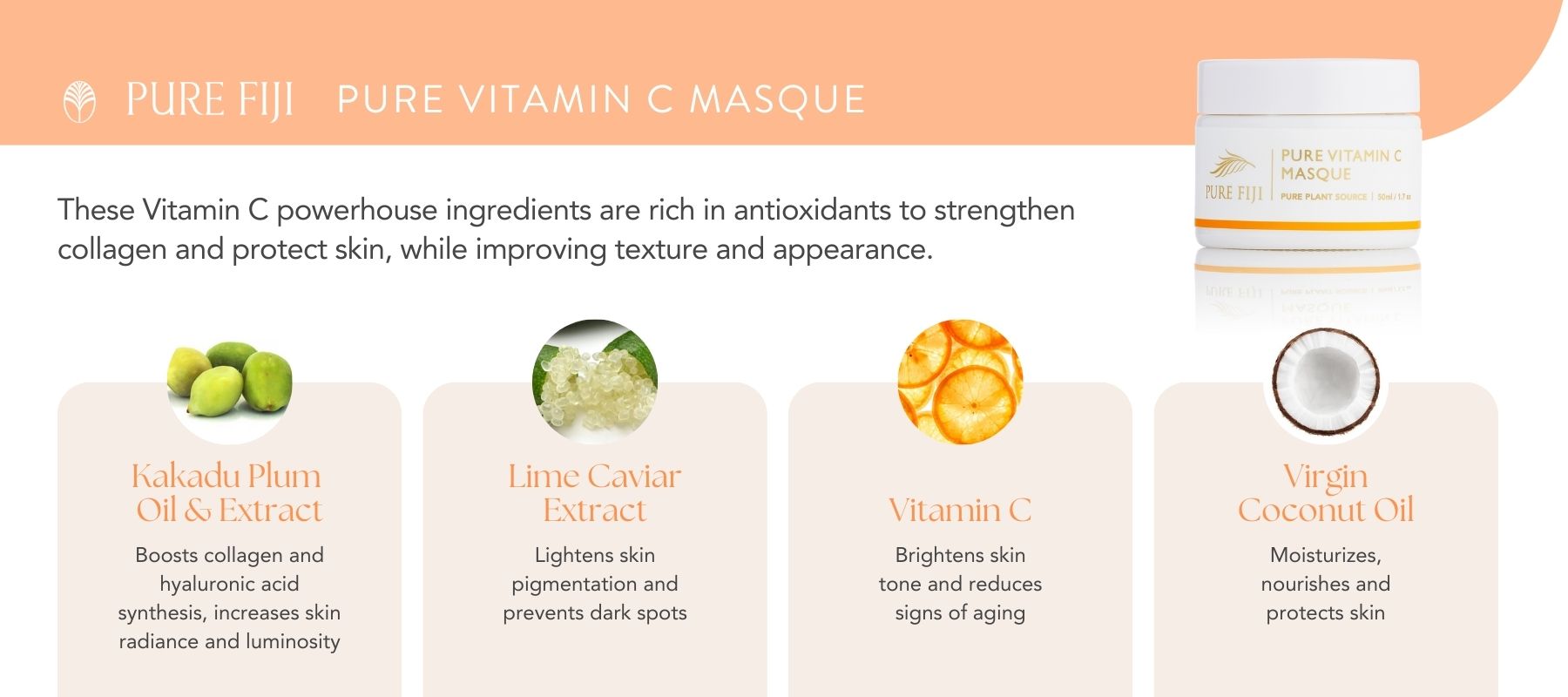 Get glowing with this powerful Vitamin C treatment masque which is supercharged with pure Vitamin C, Kakadu plum and Lime extracts.